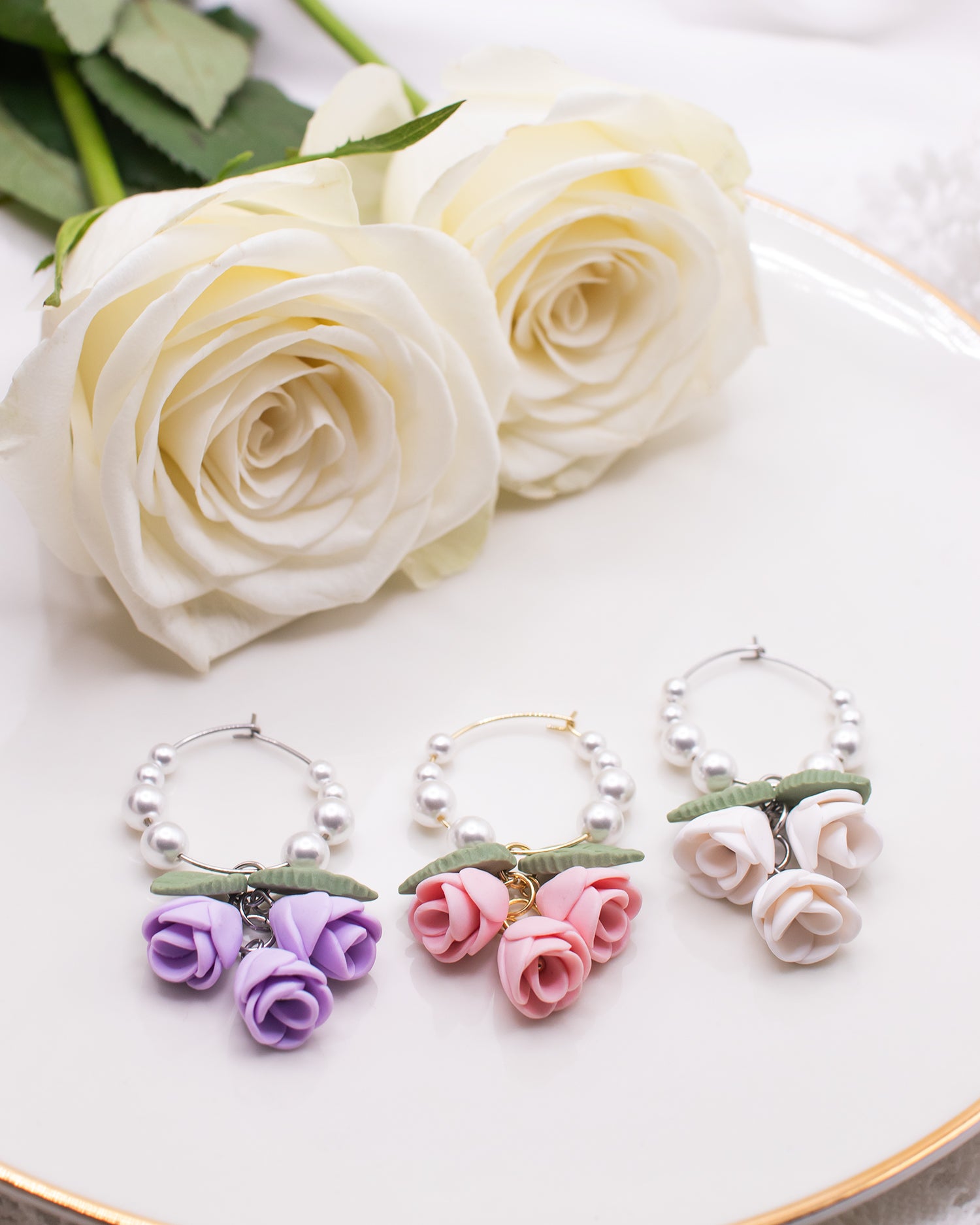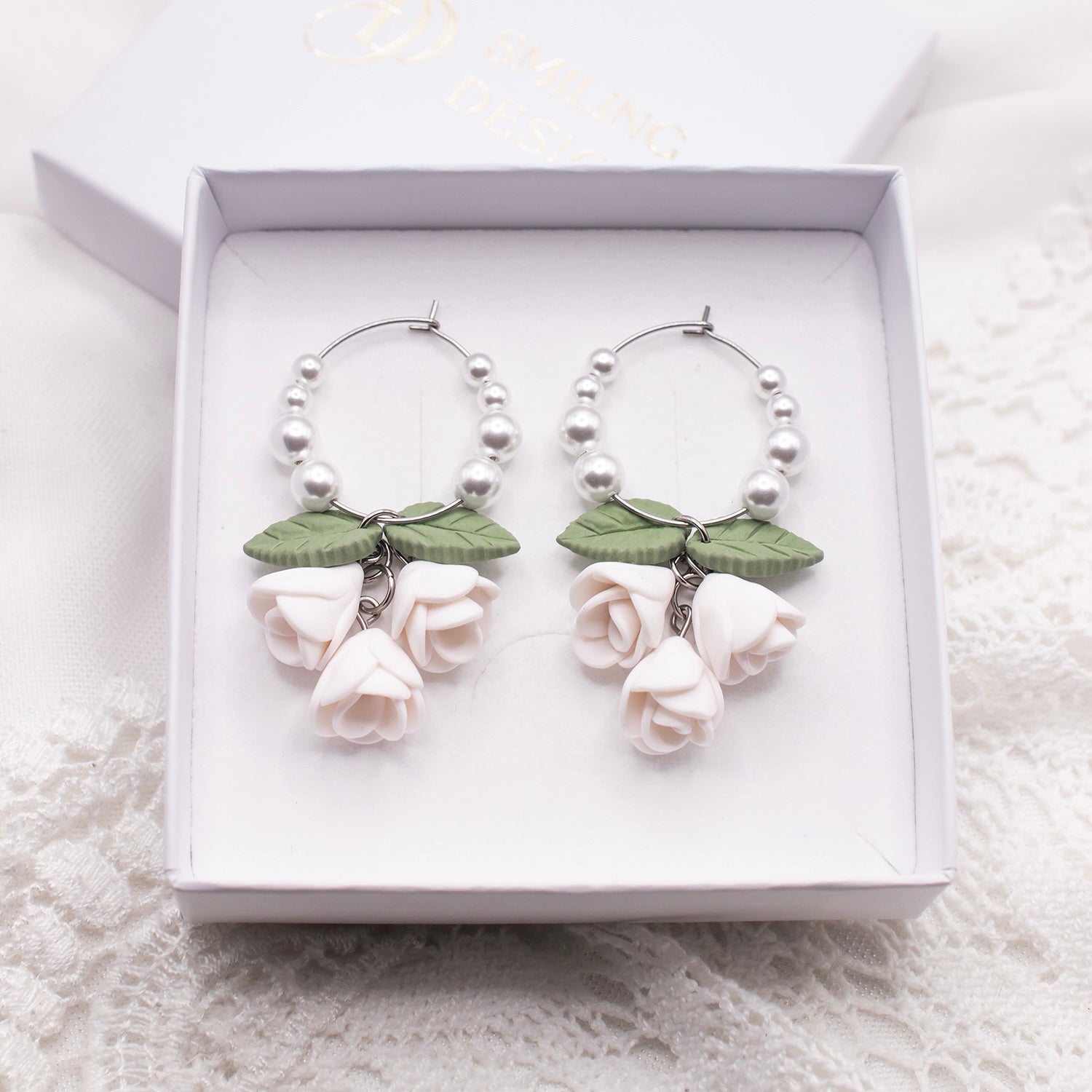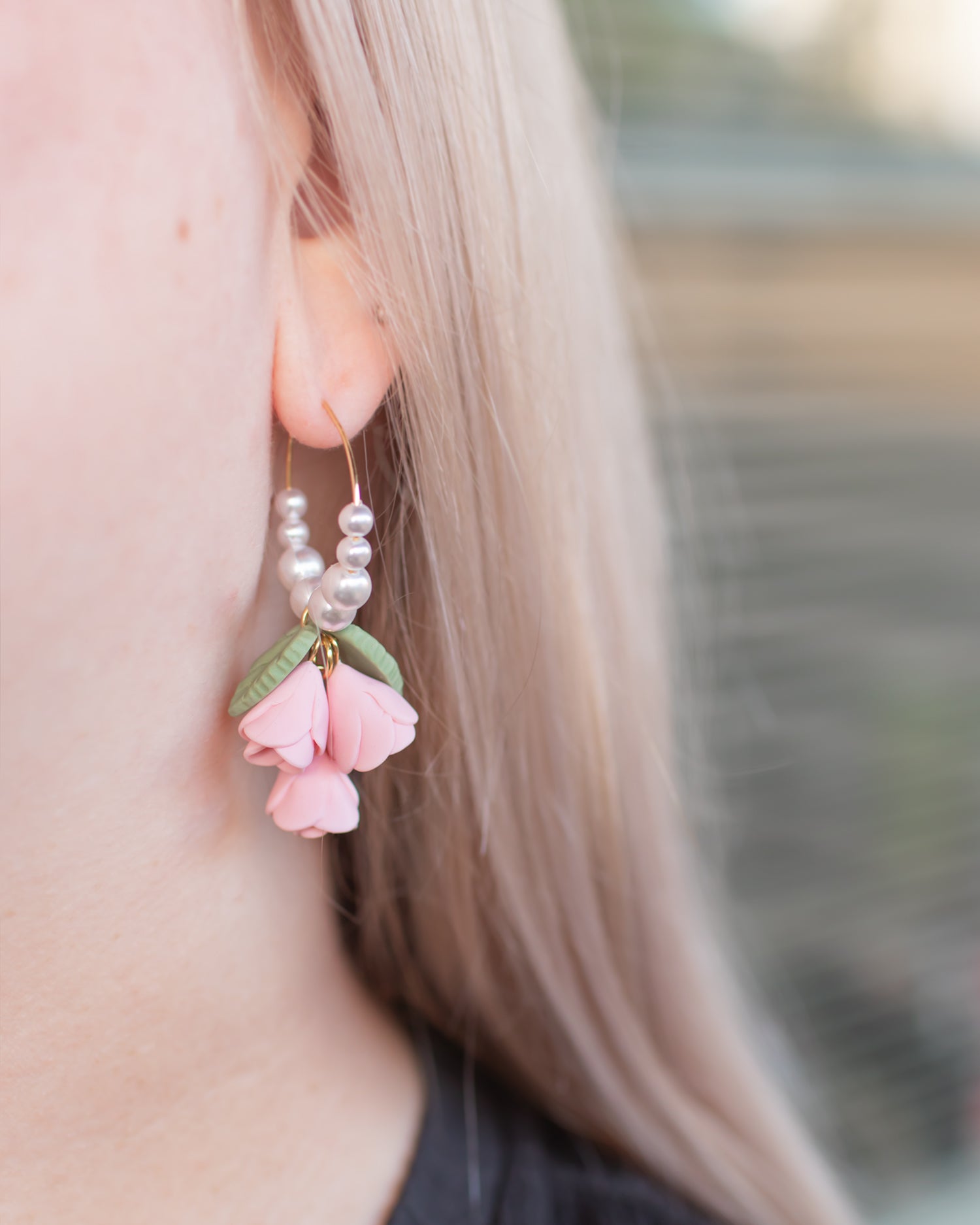 Herkät, kauniit kukkakorvakorut, jotka riippuvat ihanassa helmirenkaassa.