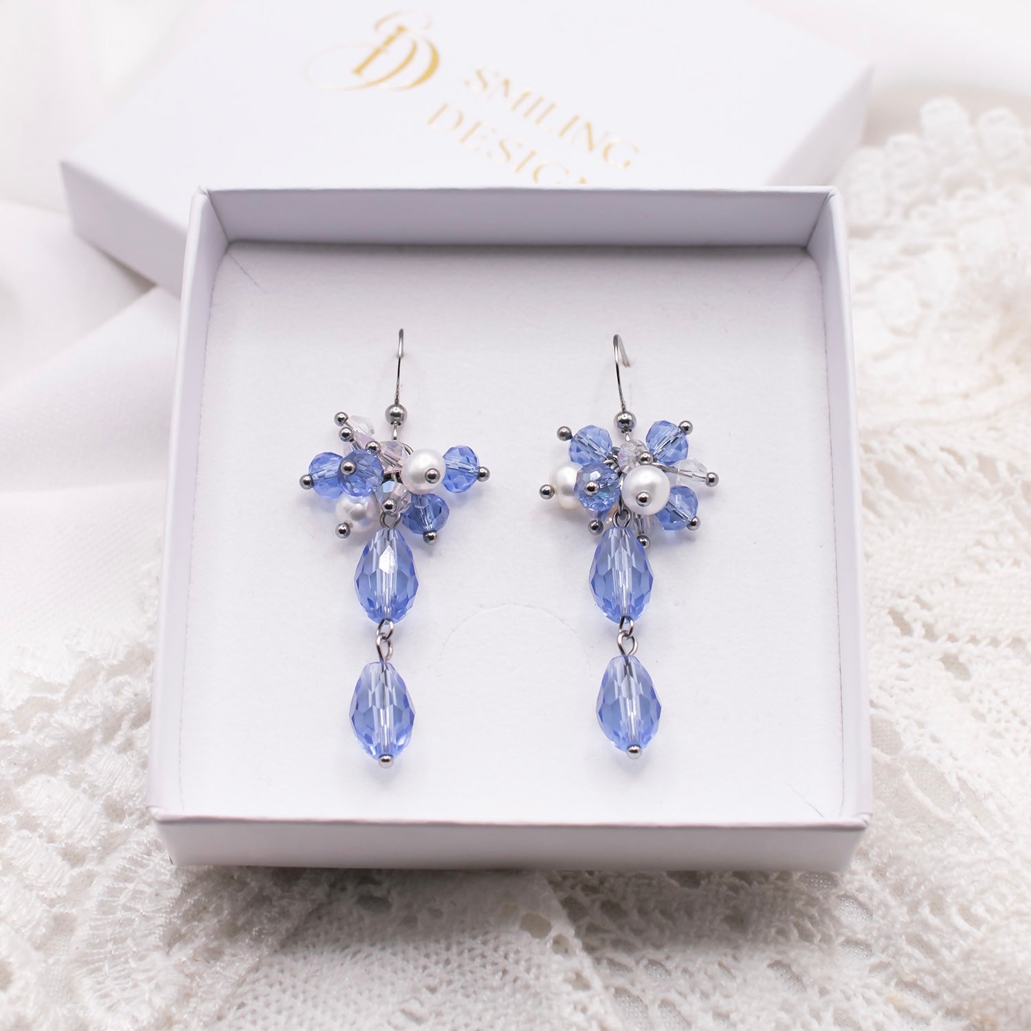 Hurmaavan näyttävät helmikorvakorut, joissa on hehkuvia fasettihiottuja lasihelmiä ja pieniä makeanvedenhelmiä.