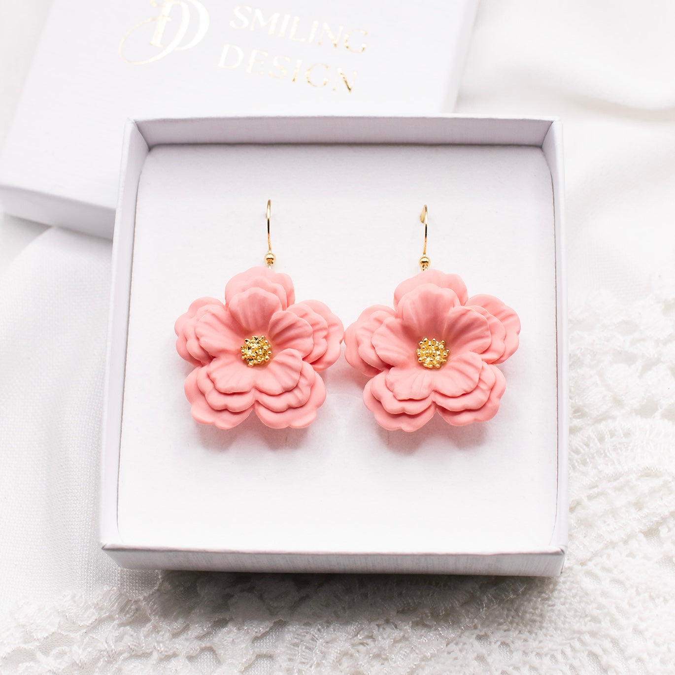 Kevyet kukkakorvakorut. Kerroksittain asetellut terälehdet luovat kolmiulotteisen vaikutelman.