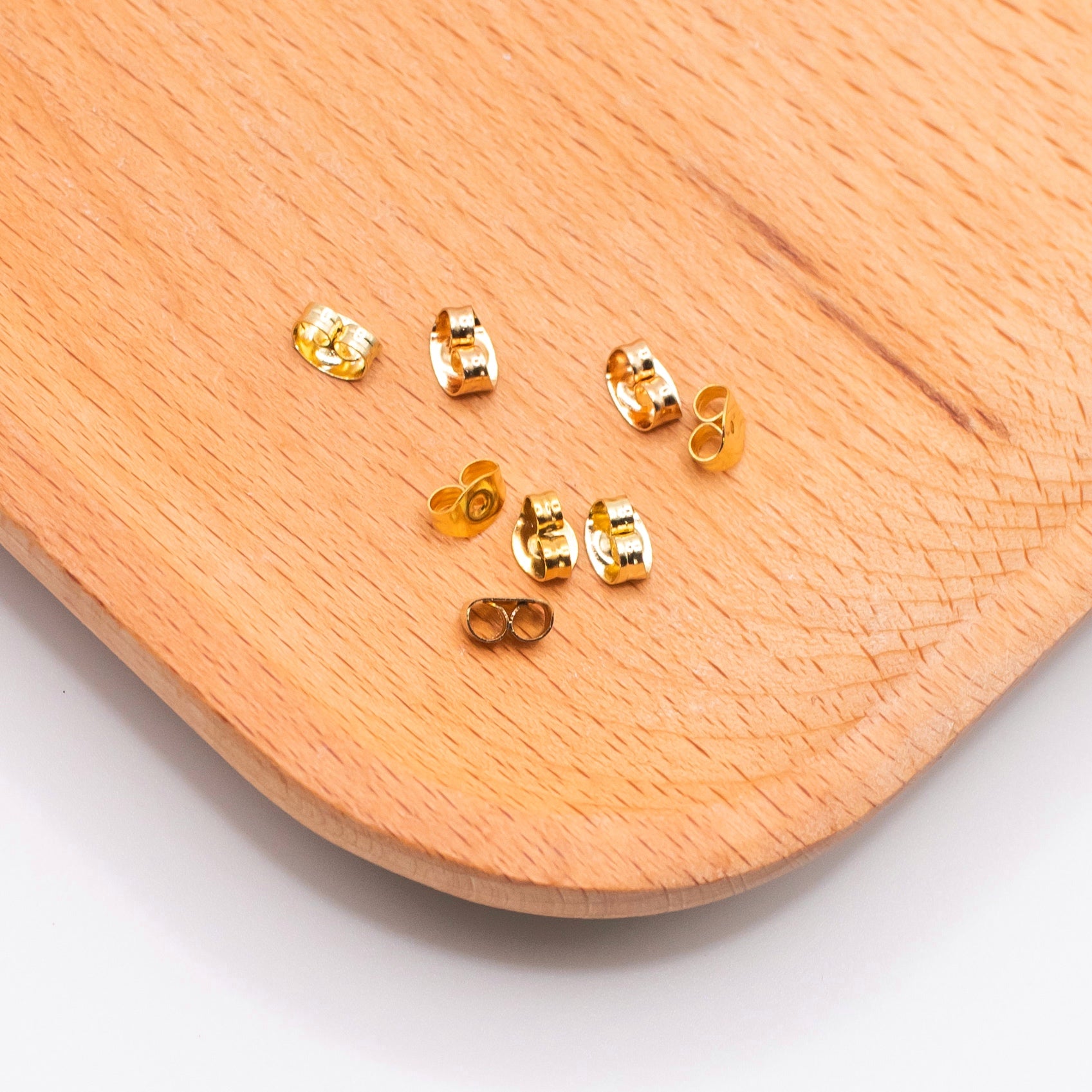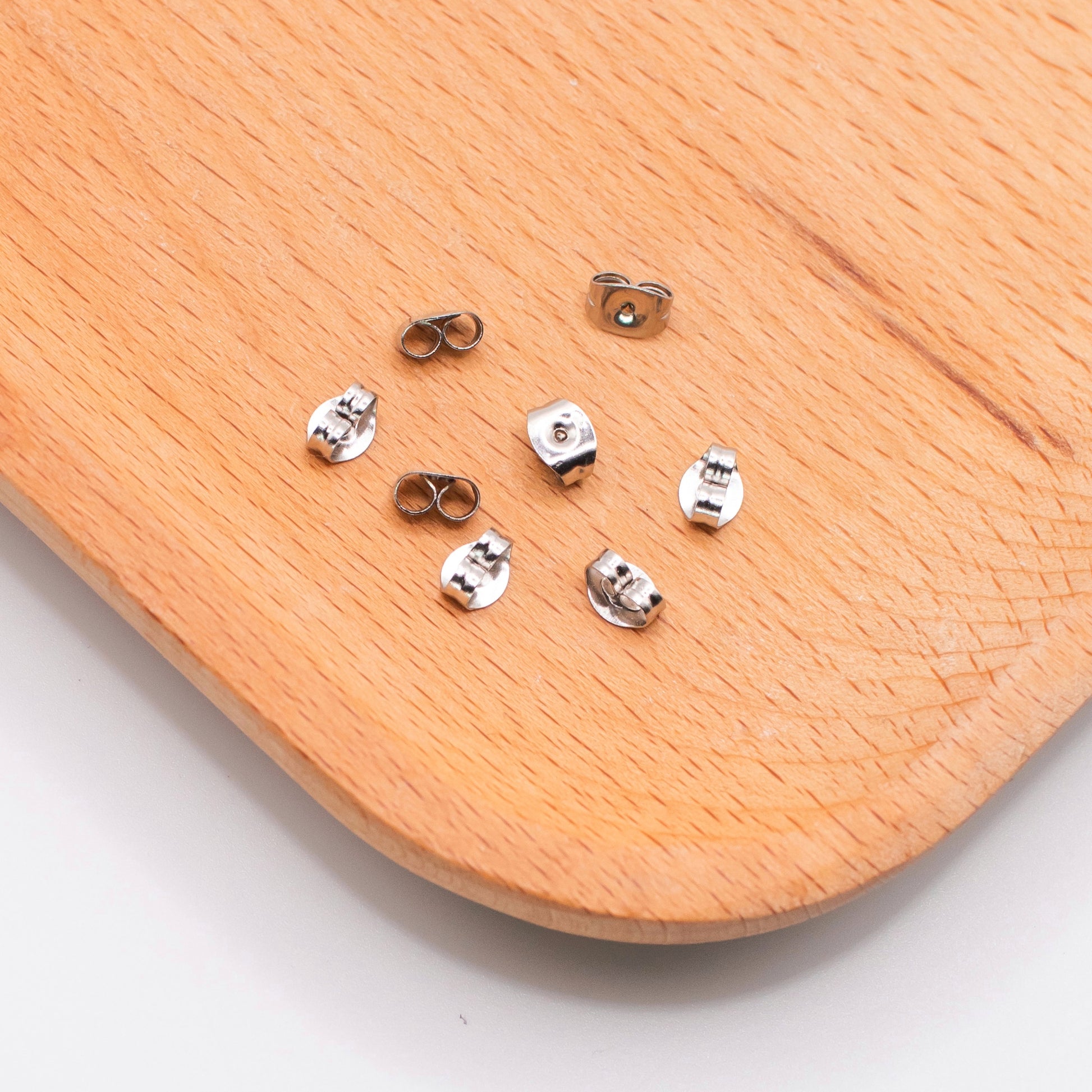 Korvakorun perusmallisia lukkoja. Materiaalina allergiaystävällinen kirurginteräs. Sopii nappi-mallisille korviksille. Koko n. 4 x 6 mm. Pakkaus sisältää 8 kpl eli 4 paria taustoja.