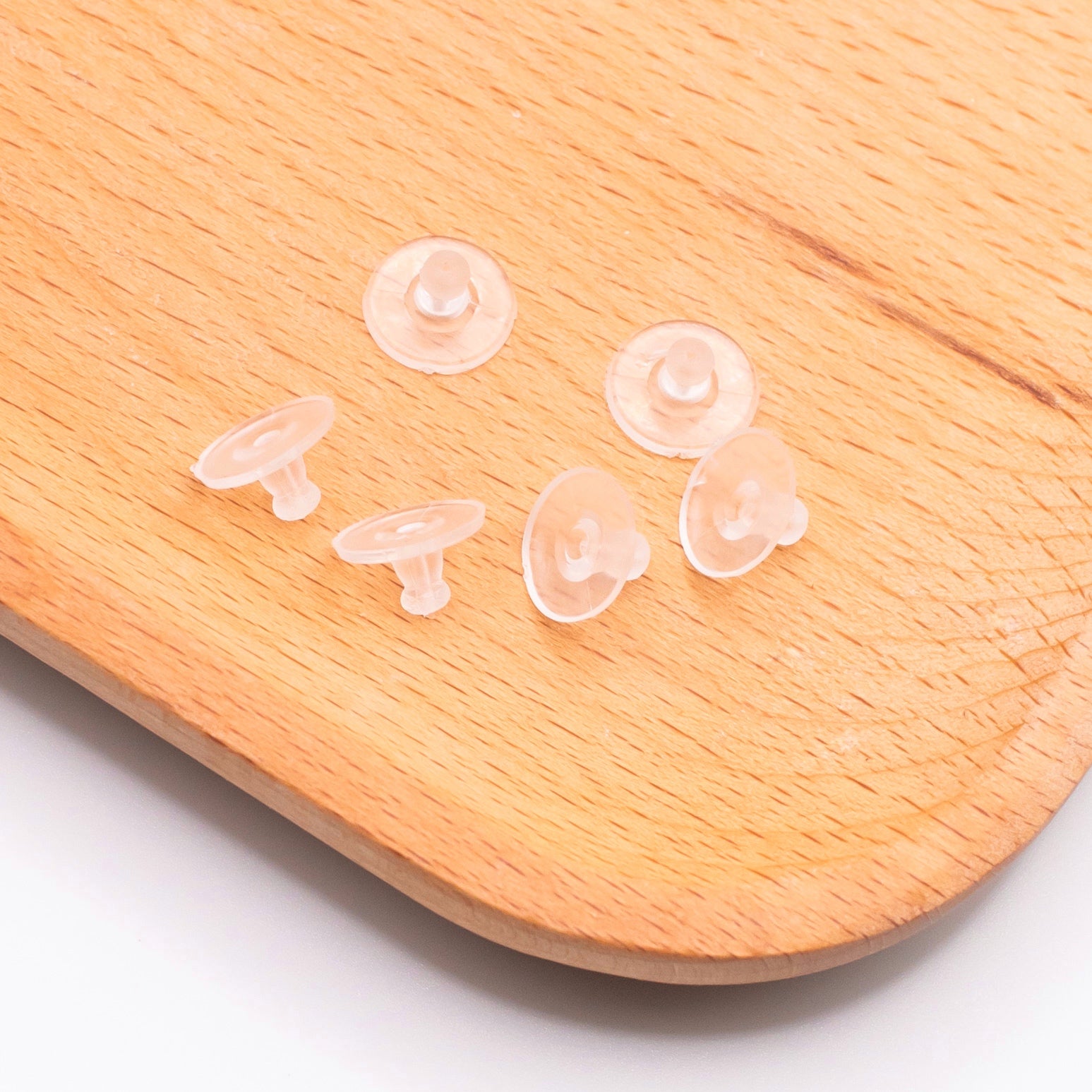 Isompi silikonistoppari, joka auttaa pitämään korvakorun hyvin paikallaan. Sopii nappikorviksille ja koukuille. Koko n. 5 x 10 mm. Pakkaus sisältää 6 kpl eli 3 paria taustoja.