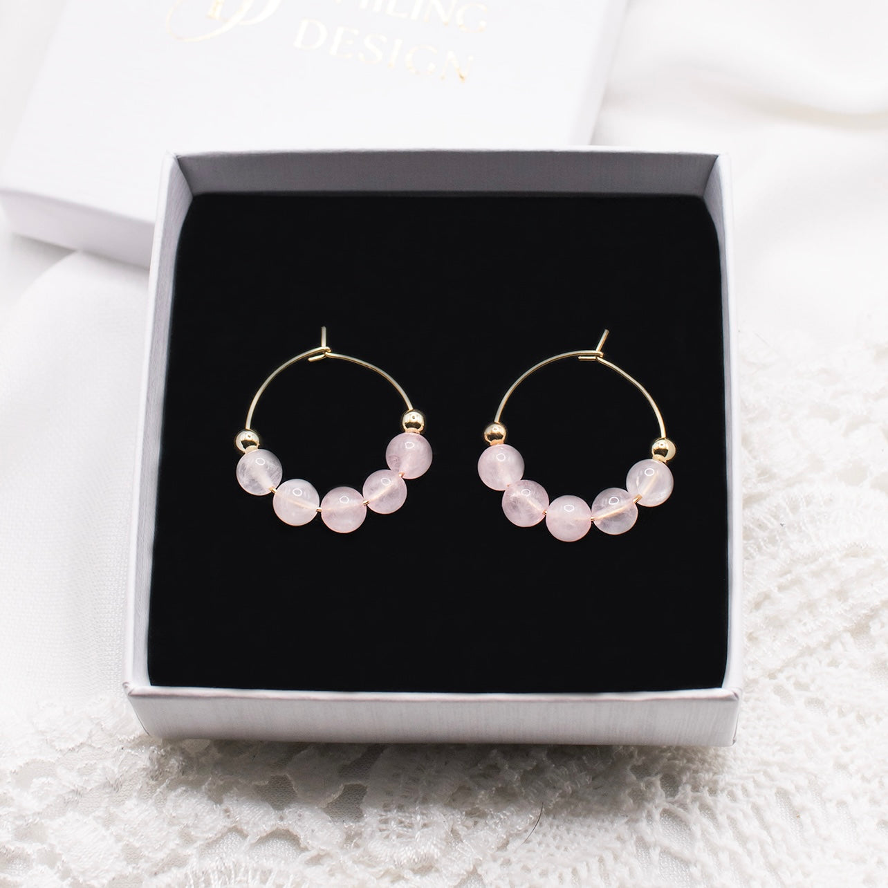 Sirot helmikorvakorut on koottu käsin aidoista kivihelmistä ja metallinhohtoisista välihelmistä.