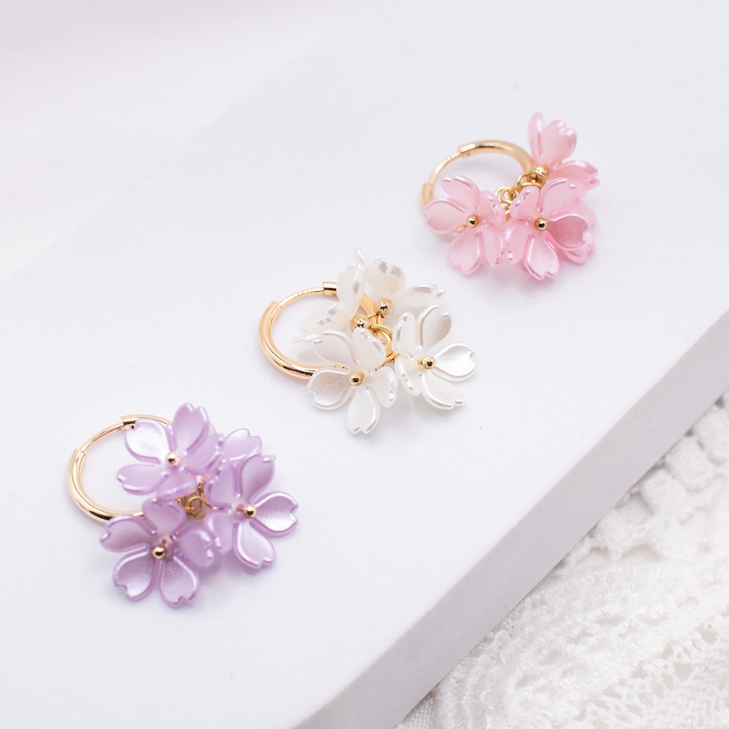 Materiaalit: Akryylikukat, lasihelmet, laadukas kirurginteräs (aidolla 18K kultauksella).