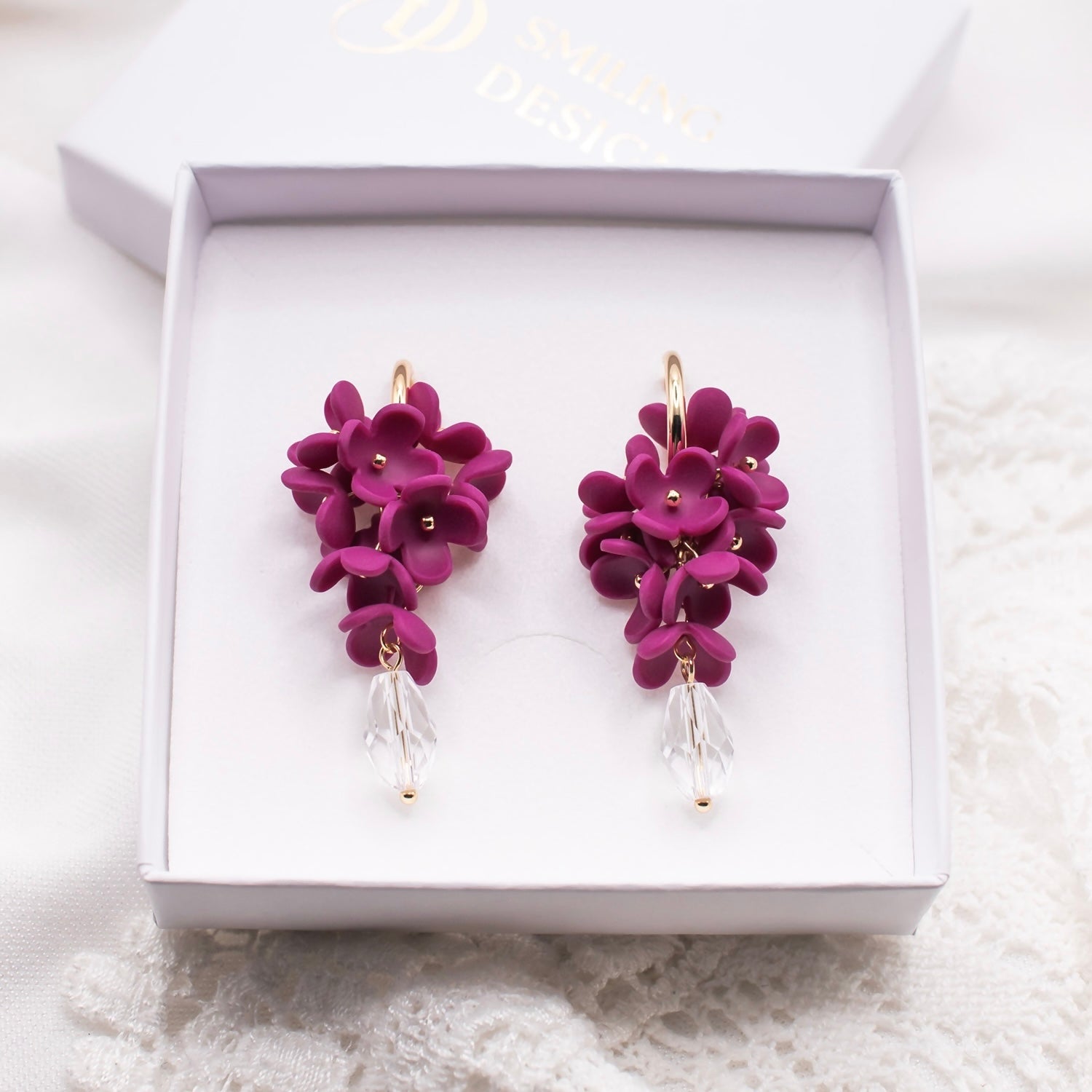 Yksi pari sisältää 20 käsin muotoiltua pientä kukkaa. Näin jokainen kukka on muodoltaan ainutlaatuinen. Korun kruunaa kaunis lasikristalli.