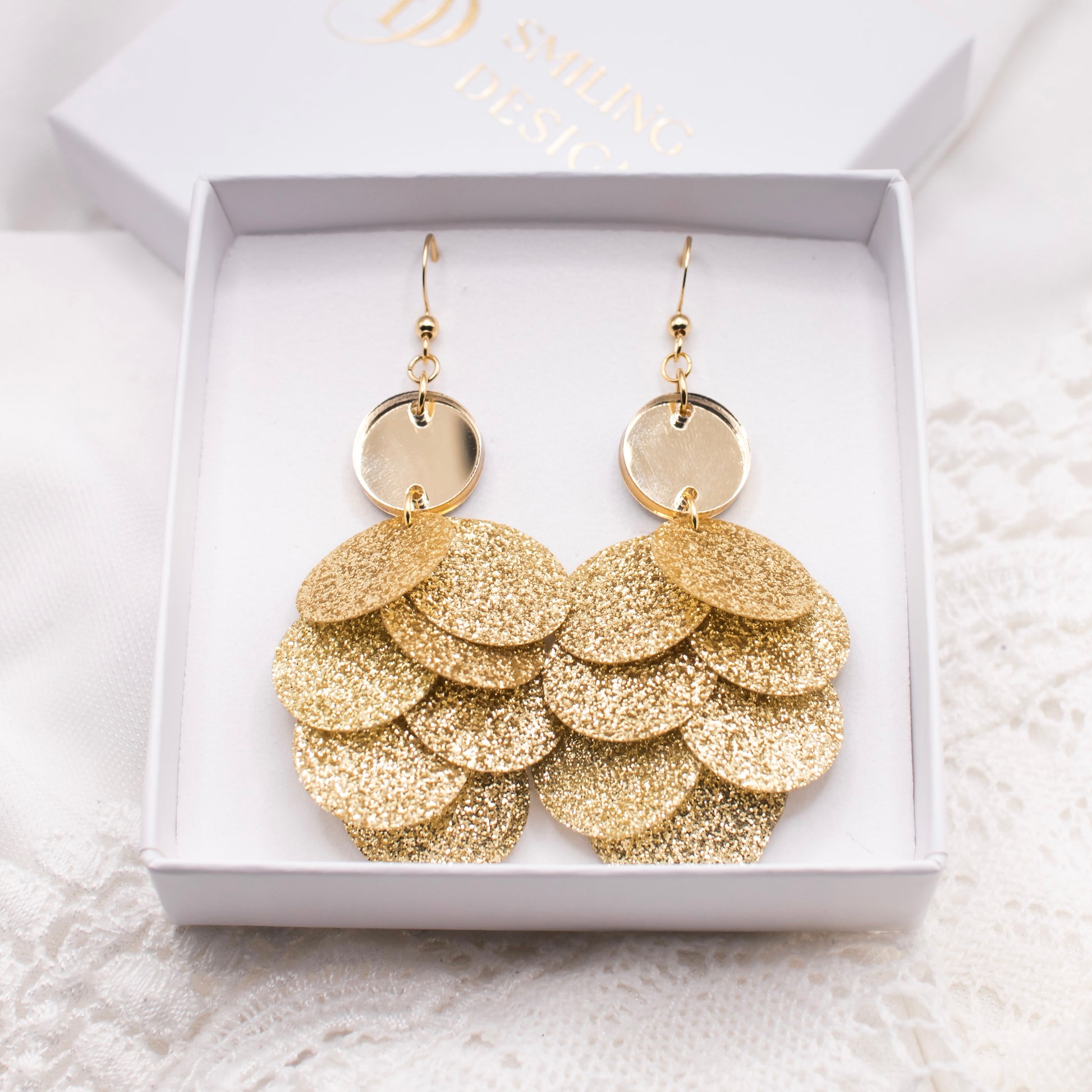 Kimaltavat korvakorut, jotka on koottu käsityönä kevyistä glitter-paljeteista. Nämä korvassa sinut huomataan!