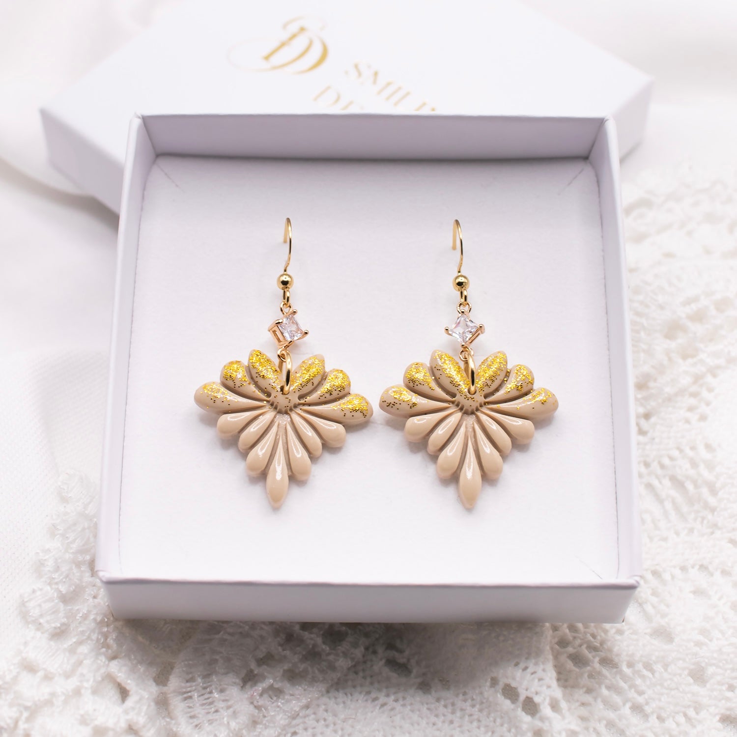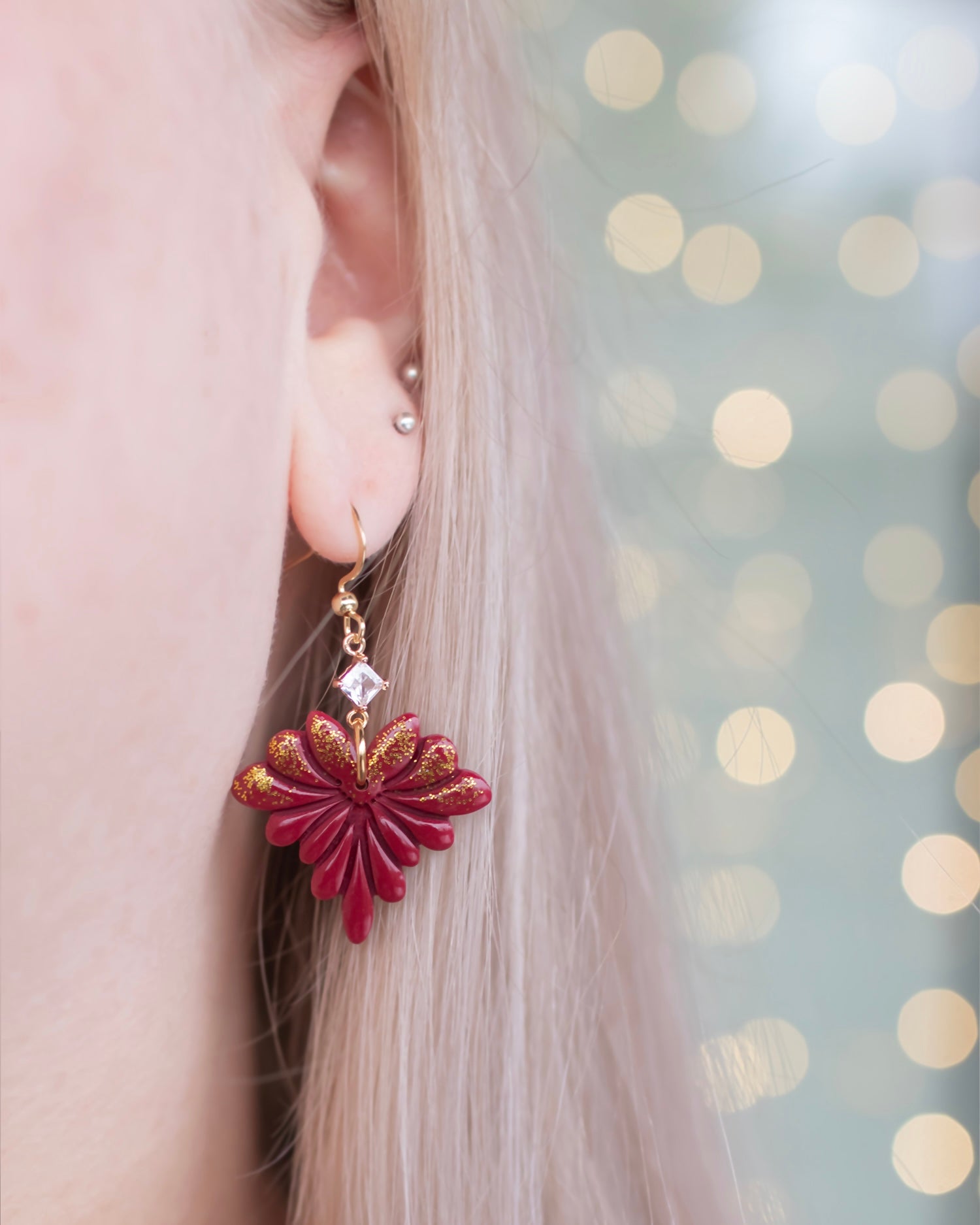 Upeat sirot korvakorut, joissa on koristeena kultaista glitteriä ja kristalli.