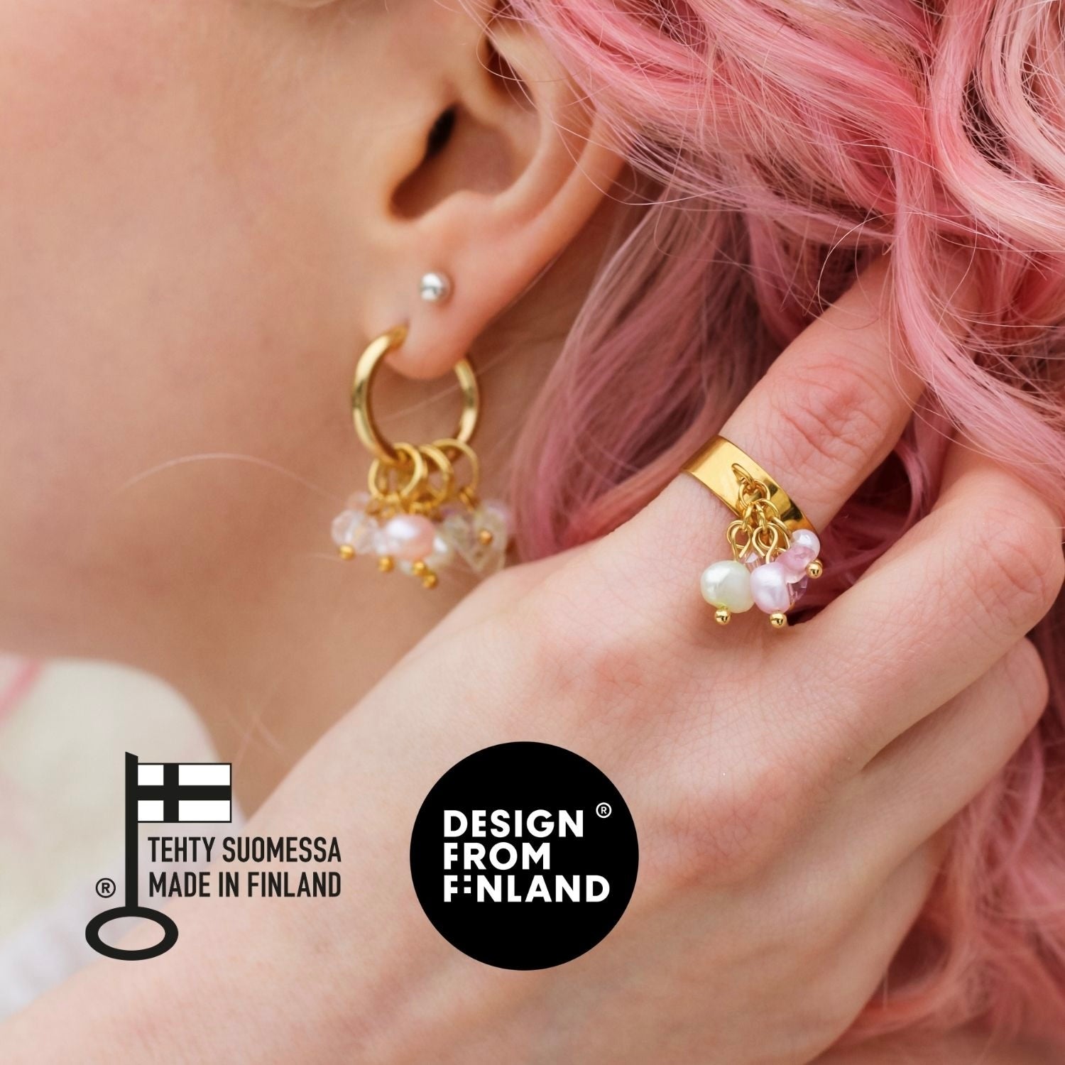 Julia-korvakorut”Aivan ihanat korvakorut! Rengas juuri sopivan kokoinen. Kevyet. Plussaa muunneltavuudesta, voi käyttää myös pelkkiä renkaita. Nopea toimitus.”